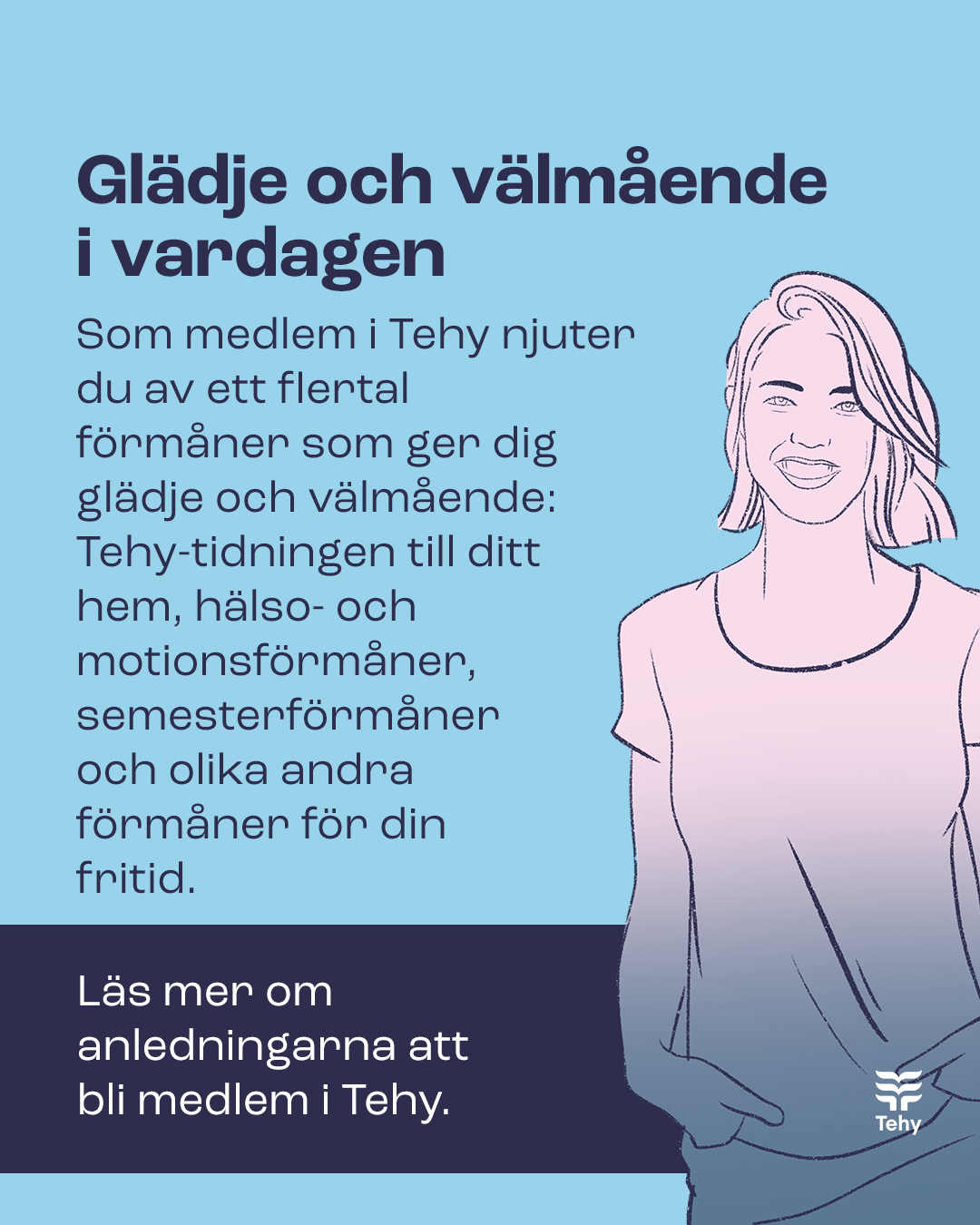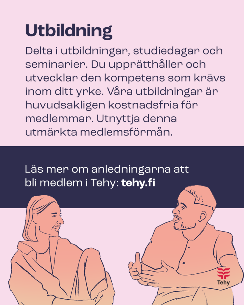 Läs mer om varför du ska vara medlem i Tehy här: https://www.tehy.fi/sv/medlemsformaner/anstallningsradgivning