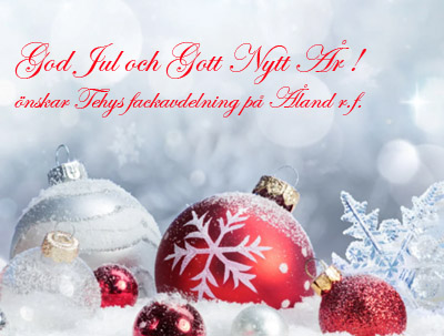 Tehy Åland önskar alla medlemmar God Jul och ett Gott Nytt År! Kontoret i Mariehamn är bemannad igen den 5 januari. Mejla tehy@aland.net så återkommer jag när jag är åter på jobb. Fackavdelningens styrelse har möte nästa gång den 15 januari. Initiativ som ska behandlas av styrelsen ska skickas till tehy@aland.net senast en vecka innan.